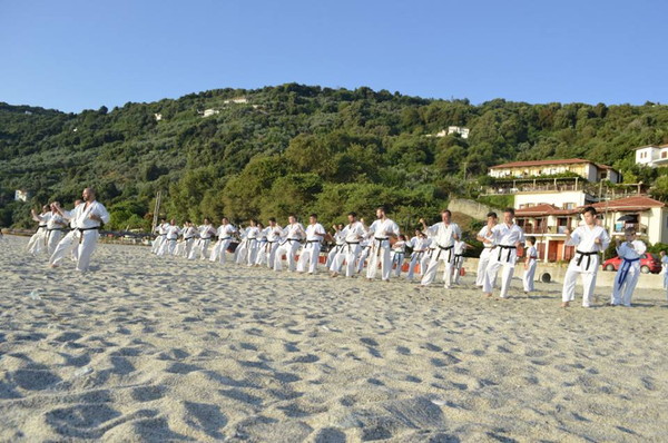 Official guest was the leading Spanish teacher and international referee Shihan Pedro Soriano, who along with the chief representative of Shinkyokushinkai Greece, Shihan George Kosmidis and Branch Chief of Northern Greece Otario Melikiadis, taught Kihon, Kata, Kumite and presented in the best way the uniqueness and authenticity of the hardest Karate style. Official guest and master of Taekwondo Basilis Alexandris, a close friend and best man’s representative, honorary member of Greek Shinkyokushinkai, presented his kicking techniques, giving a unique image in the seminar. The stay was made at the hotels Karaoulanis Beach, Zefiros Beach, where athletes and trainers enjoyed the beautiful beach of Agios Ioannis and Papa Nero, with excellent service. The sessions were held daily in the morning at the unique Papa Nero Beach by the sea, and in the afternoon at a designated area, under the trees near the Camp. On the last day, Kyu and Dan promotions exams were held by three teachers, and with the presence of Shihan Kostas Gallios, the new member of the Greek Shinkyokushinkai family.
