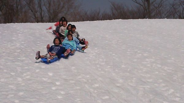 チームでリレーをしたり、個人リレー、二人乗り、そして、そりの上に立ってスノーボードのようにすべったりしました。