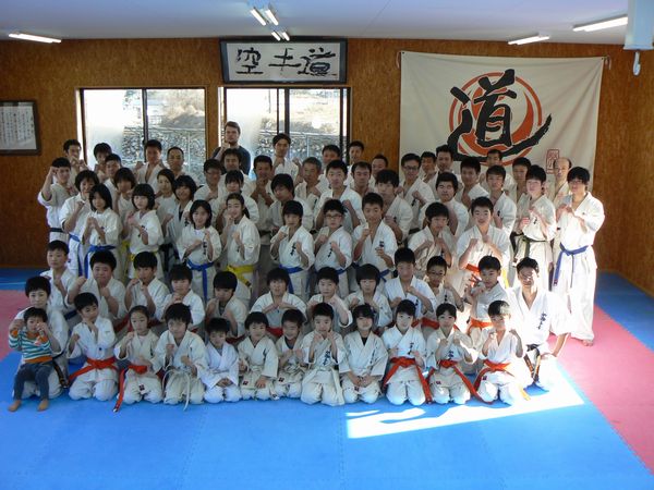 白河だけでなく福島・郡山から、そして東京から大勢の方が参加してくれ、恒例の出席表彰では、一般部の新井雄一初段が3年連続1位(ナント234日)で、子供の部で渡部彩夏5級と小山田祐冴7級が3年連続3位以内で空手着を獲得した。