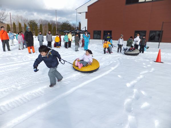 雪上運動会をやり、チーム分けをしてポイント制で勝負しました。