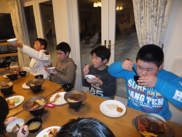 ごはんの時は子供達がよそい、キチンと皆でいただきますを言いました。