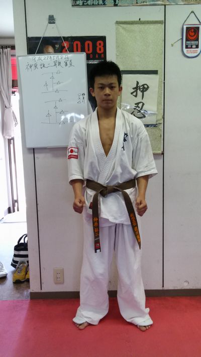 最後に、改めて今まで指導していただいた前川師範、先生方、10人組手の相手をしていただいた黒帯の先生方、最後まで応援しただいた道場の仲間達、その父兄の方々、父、母、姉のお陰で昇段することが出来ました。