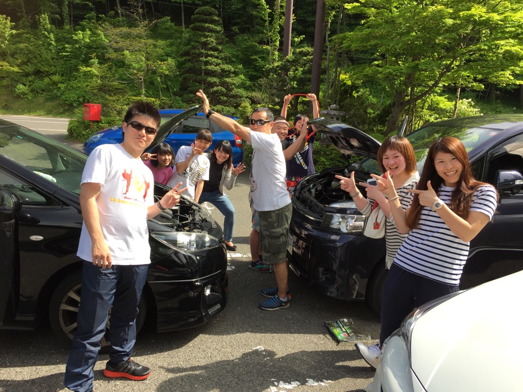 合宿中は常に笑いが絶えず、バッテリー回復作業中に笑顔で写真を撮るお茶の水!!