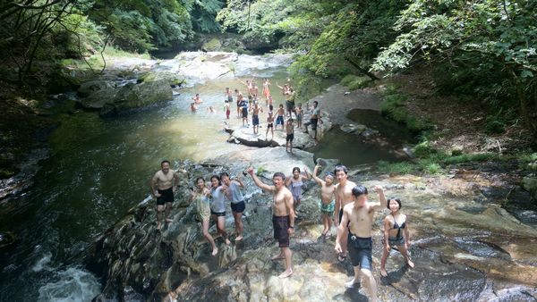 次は、江竜田の滝で滝遊びをしました。