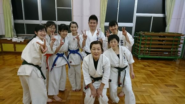 基本、移動、型、組手。1つひとつ丁寧に、そして指の先まで細かいところにまで意識を集中させることの大切さ、そして大変さを改めて感じるとともに、私も前で稽古している先輩方の背中から多くのことを学ばせて頂きました。