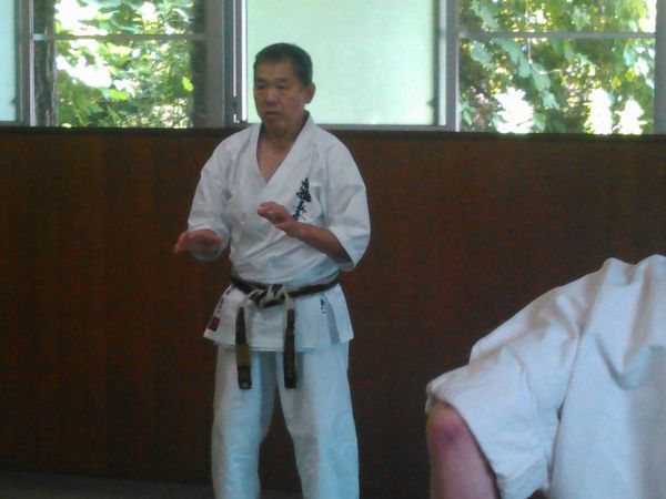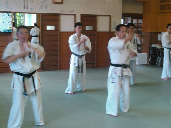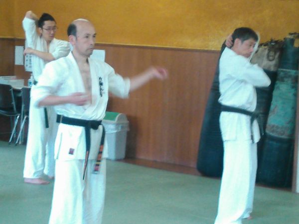 また、約束組手では、最初に前蹴りから入る理由は、「強力な蹴りを捌ければ、その後の突きの捌きが容易に感じることができるからである。」また、「先ずは移動しないで、その場でしっかり捌く。足さばき・体さばきでごまかさないこと。」などを教えていただきました。