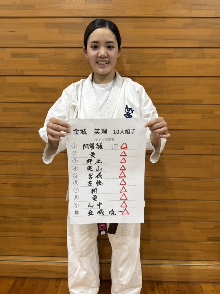 吉田師範から声を掛けられ、昇段審査を受けることができると知った時は本当に嬉しかったです。仕事をしながらの練習は大変でしたが、10人組手ではたくさんの応援に支えられ、最後まで諦めずにやり抜くことができました。