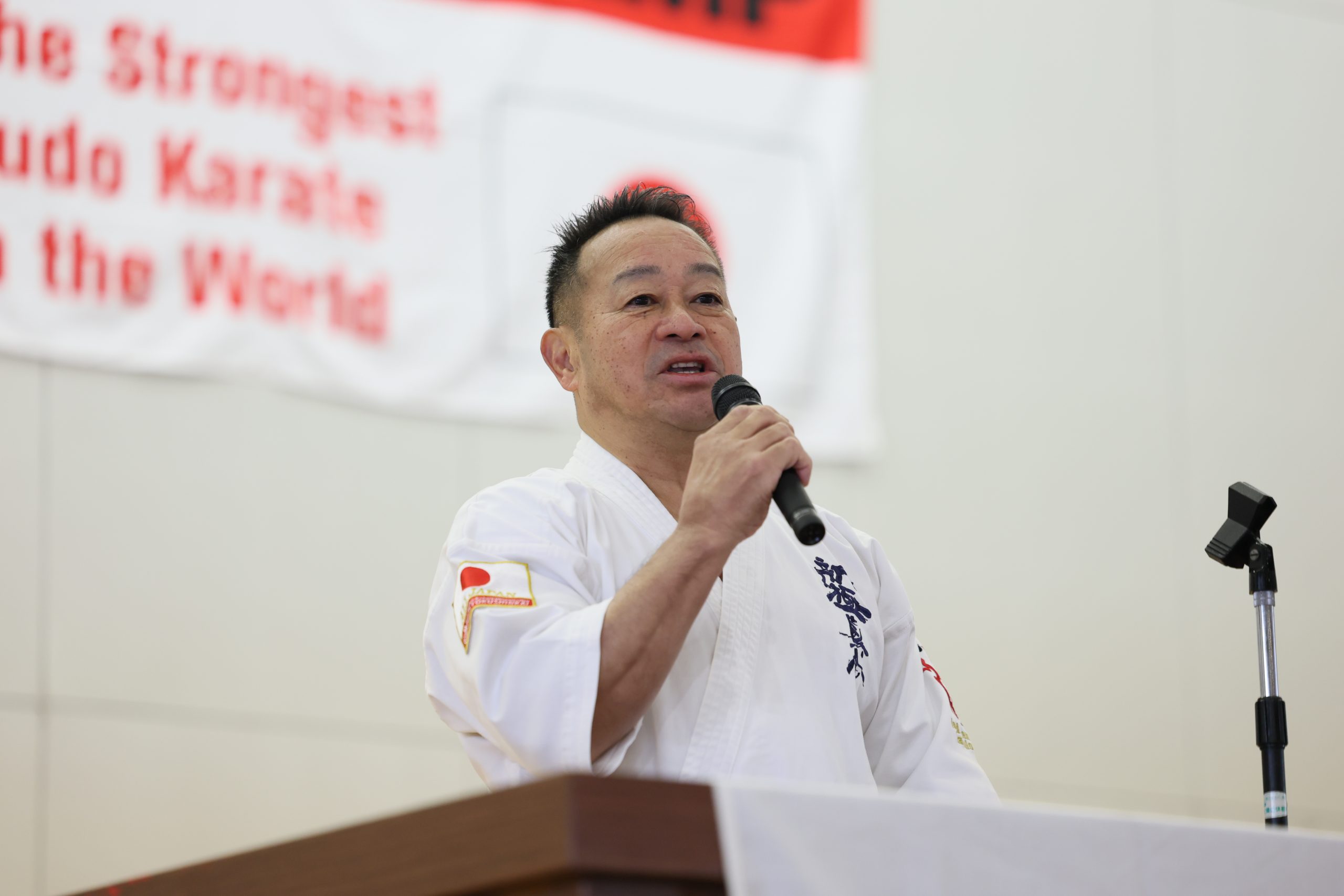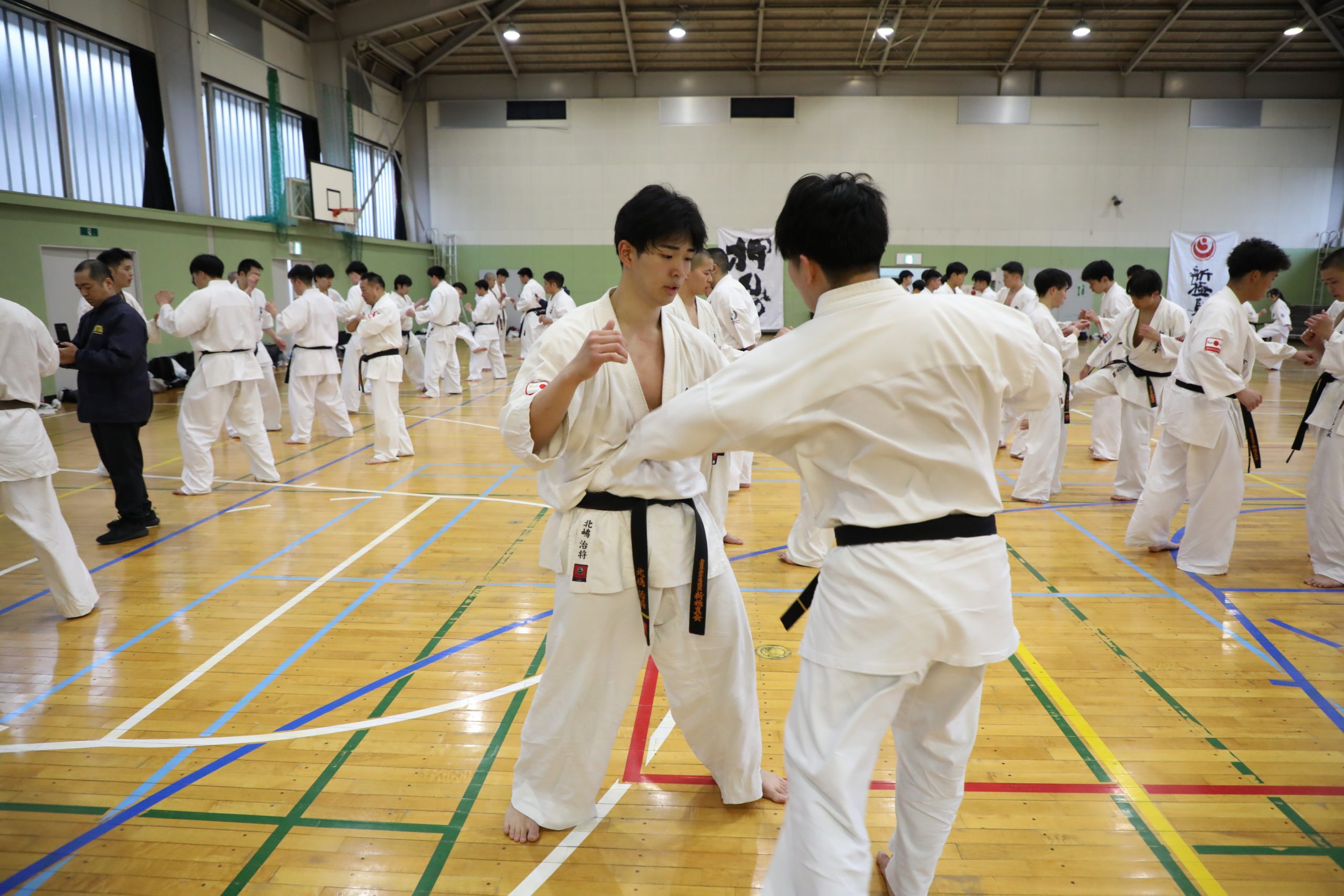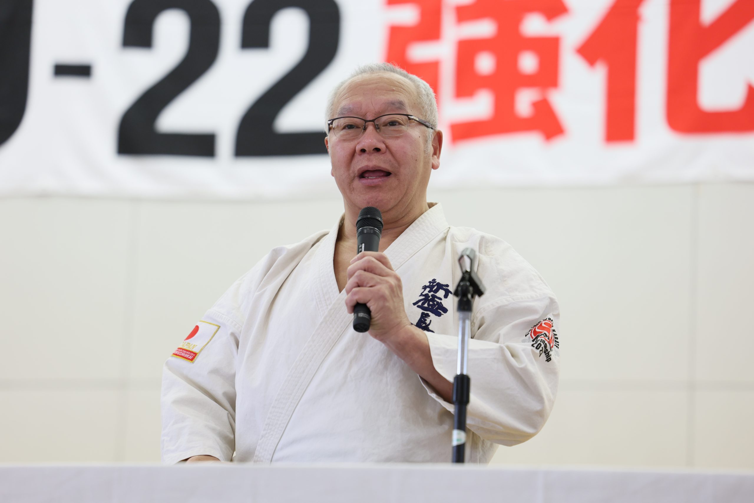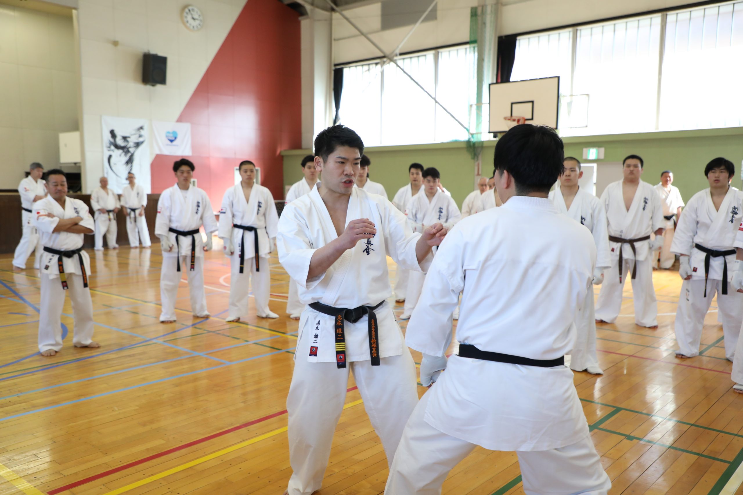 選手強化委員長に就任した奥村幸一師範は「U-22強化合宿は今回が5回目になります。この合宿はJFKO設立を経て、第1回JFKO全日本大会が開催された2014年に、塚本師範の発案で始まりました。JFKO全日本で勝つために、そして世界大会につなげるために精鋭を集めたのがU-22強化合宿です。この合宿が何のためにあるのか。もう一度噛みしめてください。来年は世界大会の日本代表選手団が決定します。いろいろな人の思いを背負い、新極真会のために目標を達成しましょう。3日間、命をかけてがんばってください」と檄を飛ばした。