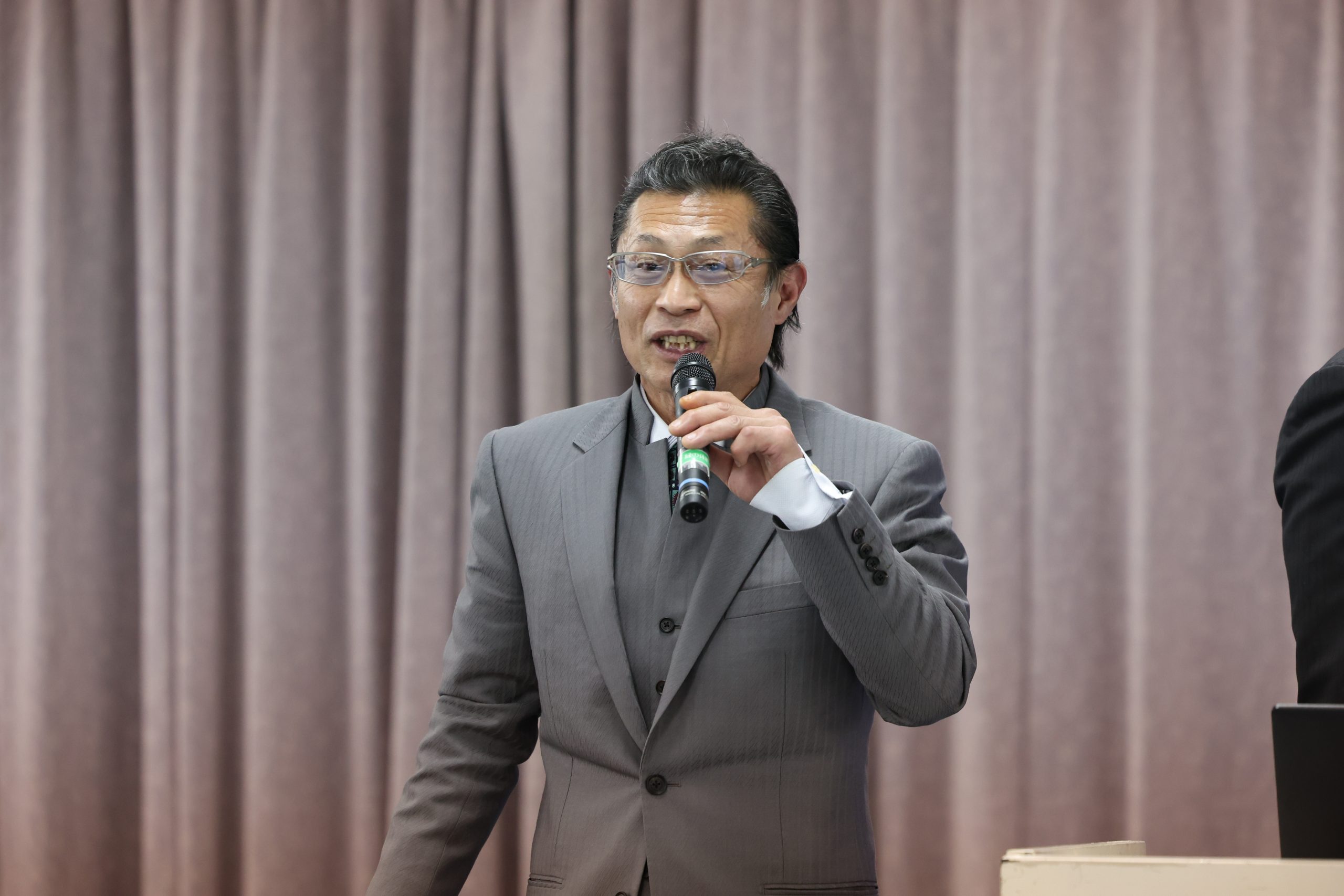 続く島本雄二支部長のセミナー前に、緑代表から「島本チャンピオンは世界大会を2連覇しています。当時はこちらとしても、島本選手だったら何とかしてくれるという安心感がありました。入来建武チャンピオンもそうです。今の女子では鈴木未紘選手がそういう存在です。しかしながら、男子は安心して任せられる選手がまだいないのが現実です。KCCや世界大会の選抜戦である全日本大会が控えている今年、そういう存在になれるようにがんばってください」と檄が飛んだ。