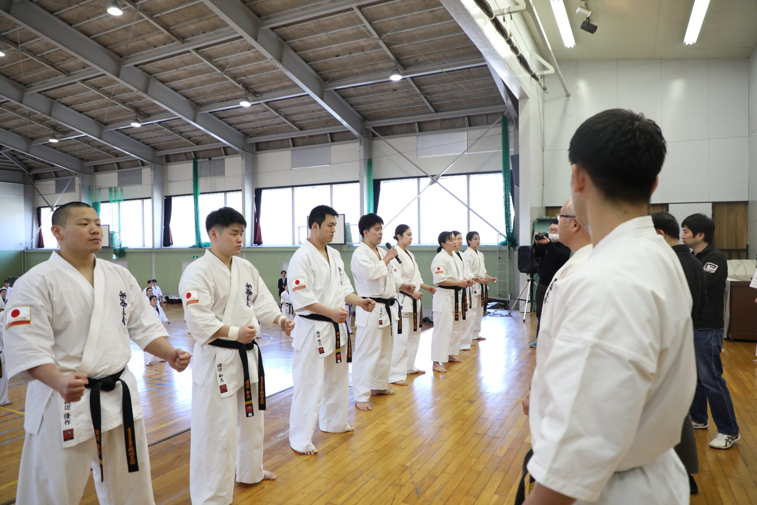 なお合宿不参加となった選手強化副委員長の塚本徳臣師範に代わり、今回の合宿の陣頭指揮を執った選手強化委員の島本雄二支部長は「試合に近い緊張感を持ち、この3日間で気づきや改善点を見つけ、課題を持ってまた5月まで稽古に励むことができる。そういった有意義な合宿にできるよう、一挙手一投足気を抜かずがんばっていきましょう」とエールを送った。