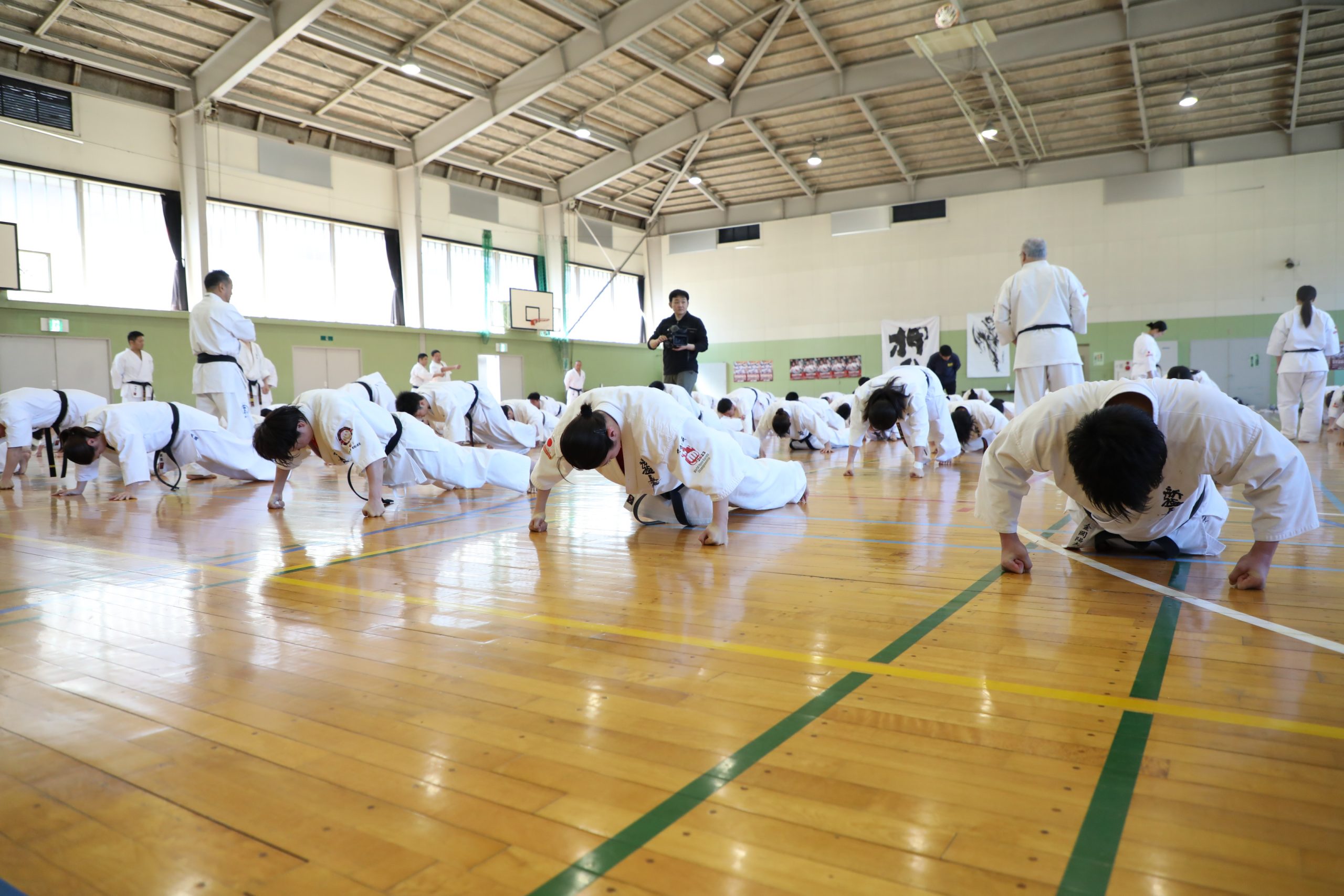 緑健児代表は選手たちに「ここまで満足できるくらい全力で稽古できた人もいれば、そうでない人もいると思います。自分自身を分析しないといけません。できていないと感じる人は、最後の稽古こそ手を抜かずにがんばりましょう。ここでのがんばりがJFKO全日本大会、KCC、世界大会の選抜戦である全日本大会につながっていきます。やり尽くした選手だけがチャンピオンになれます。人生ではいろいろな試練がありますが、厳しい稽古や試合に比べれば大丈夫だと、前向きに乗り越えていける日が来ます。がんばってください」と発破をかけ、基本稽古からラストの稽古が始まった。