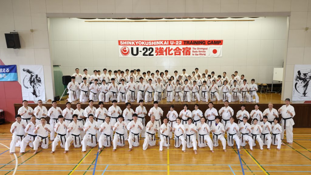 選手強化委員長に就任した奥村幸一師範は「U-22強化合宿は今回が5回目になります。この合宿はJFKO設立を経て、第1回JFKO全日本大会が開催された2014年に、塚本師範の発案で始まりました。JFKO全日本で勝つために、そして世界大会につなげるために精鋭を集めたのがU-22強化合宿です。この合宿が何のためにあるのか。もう一度噛みしめてください。来年は世界大会の日本代表選手団が決定します。いろいろな人の思いを背負い、新極真会のために目標を達成しましょう。3日間、命をかけてがんばってください」と檄を飛ばした。