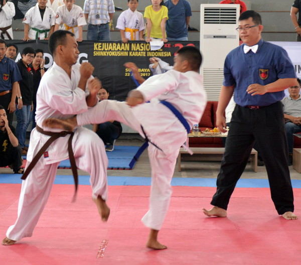 In the Saturday morning of July 22, 2017, around 120 participants from 8 provinces gathered at the Sport Hall, Untag-Surabaya, for competition in the 20th All Indonesia Shinkyokushin Karate Championship.