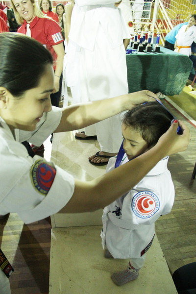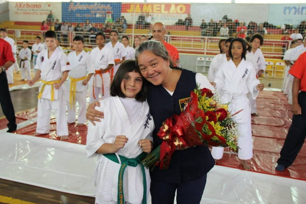 Dulce Nakao Sensei was honored, and represented the mothers of karate, receiving a bouquet of flowers, and delivery of trophies, gift received from the hand of his sons.