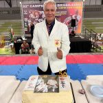 After the competition, a celebration took place to honor Shihan Denivaldo Carvalho’s 50 years of dedication to karate. The gathering brought together teachers and friends, featured a buffet of assorted refreshments, a karaoke session, and a specially decorated cake commemorating the golden anniversary.