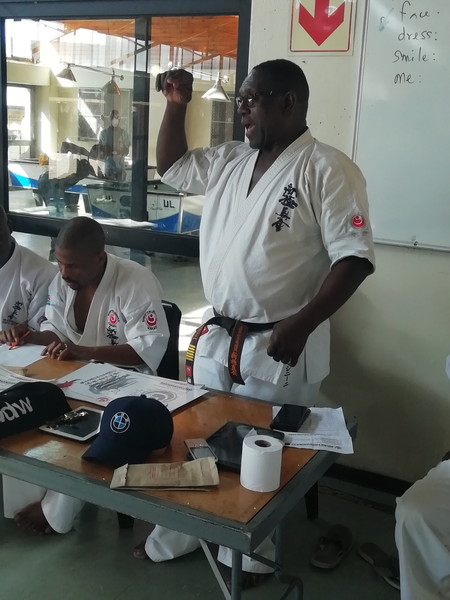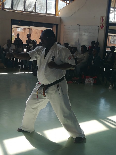 The grading proceedings were conducted by Shihan Isaac Mashinini (6th dan) as an invited quest and chief examiner. He was assisted by Medupi Robert Lechelele (3rd dan, Limpopo Province), Phillip Nkuna (2nd dan, Limpopo Province), Sydeck Monyela (2nd dan, Limpopo Province), Elvis Shiluvane (2nd dan, Limpopo Province), Andrew Khoza (1st dan, Mpumalanga Province), Innocent Zikhali (2nd dan, Gauteng) and Frans Seabi (1st dan, Limpopo Province). The students have prepared very well as it showed in their good performance and character displayed throughout the event. The syllabus focused on physical training, Kihon, Ido, Kata, and Kumite sessions specific for each kyu level.