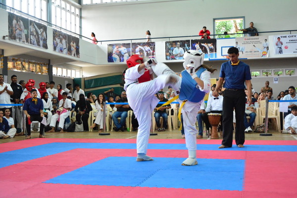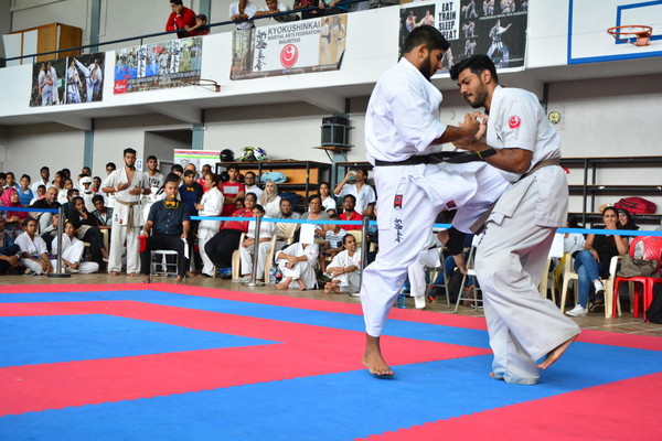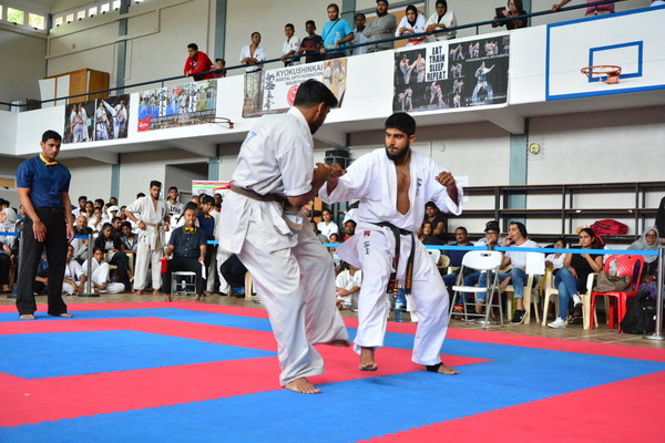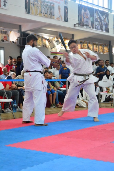 The quarter-finals were concluded with a set of demonstrations by kids from various dojos. Sempai Saleem Hansrod, Sofia Hansrod and Nirupama D’sa, from the Floreal dojo, performed the Pinan Sono Yon Kata followed by a quick self-defence demo and the swift execution of tameshiwari of sticks.