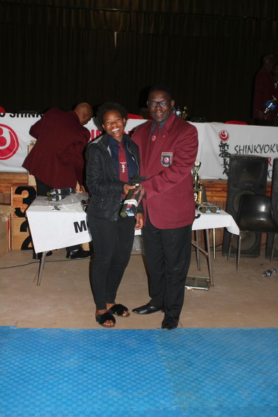 The tournament had registered over 150 competitors, participating in both junior and senior weight categories and the spectators packing the hall to capacity to witness this historic event in our town. The annual Limpopo Province tournament is growing, and has attracted fighters from different organizations across the country. It was attended by WKO Shinkyokushinkai South Africa teams from 5 provinces: Gauteng, Limpopo, North West, Mpumalanga and Kwa-Zulu Natal province; and teams from WKO Swaziland under sensei Musa Arnold Simelani, IKKF, Nakamura, Kyokushinkan, IKO Matsushima. This event had succeeded in reviving the spirit of full contact karate and kyokushin in Limpopo. Sensei Lechelele impressed the audience with a great powerful tameshiwari performance together with a Xitsonga traditional dancer group. The host, Limpopo province branch and the Matlosana branch performed very well, with Limpopo province winning the best female fighter award by Ms. Naledi Nkadime from the University of Limpopo dojo who also placed 3rd in the women’s open division. Black belts and certificates were also received by those who passed the dan grading exam in 2018 and previously.