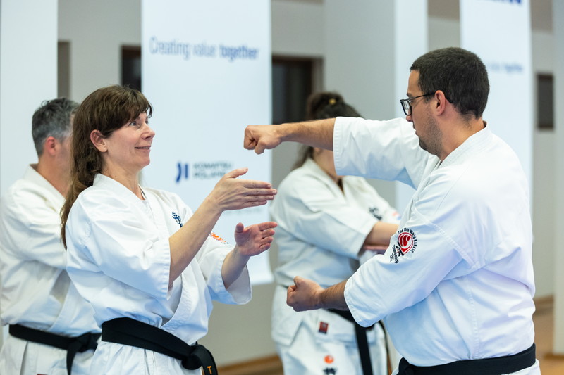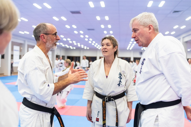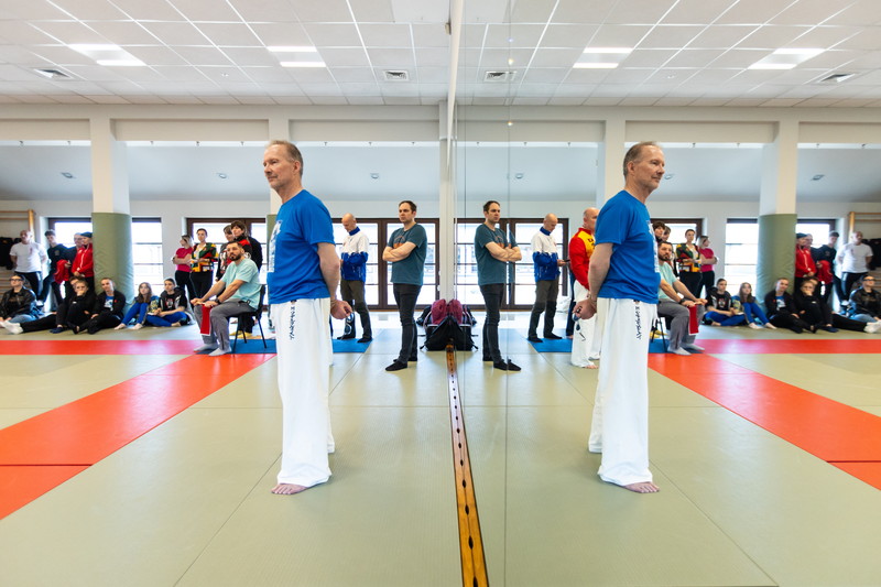 During the sessions, Shihan Fitkin and Shihan Collins provided a detailed analysis of each kata, which was demonstrated by Shihan Anca Wallmen. Following the theoretical breakdown, the kata were practiced in groups divided by grade, and subsequently refined in small teams of 3–4 people.