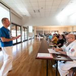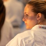 講習会では、フィトキン師範とコリンズ師範がそれぞれの型について詳細な分析を行い、アンカ・ワルメン師範が実演を行いました。理論の後は、段位別グループで型を練習し、その後小グループに分かれてさらに磨きをかけました。