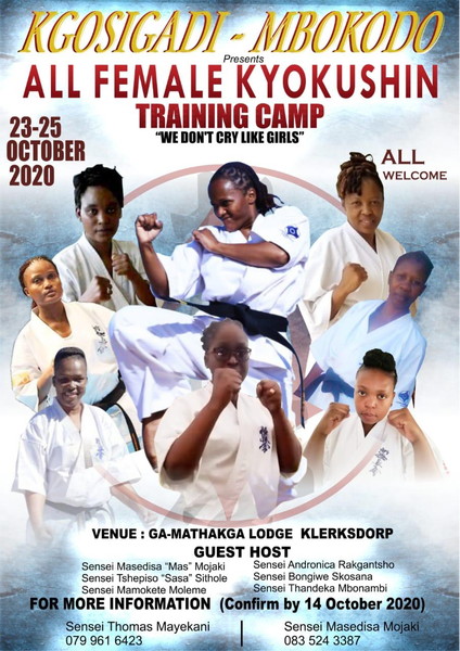 On Behalf of The Kgosigadi-Mbokodo, All Female Kyokushin Training Camp organizers/facilitators