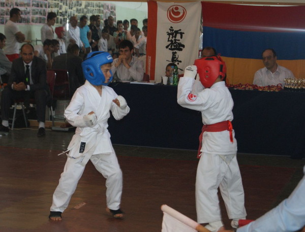 The Armenian Shinkyokushin Karate Junior Championship was held once again on May 5th, 2013, at the sports school in the village of Proshyan in the Kotayk Region, where 75 athletes under 18 years of age participated from different regions.
