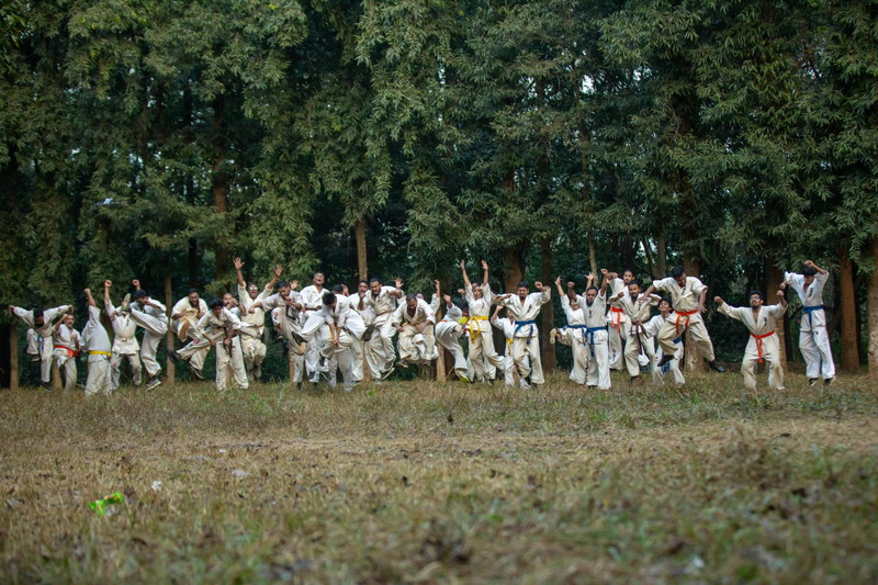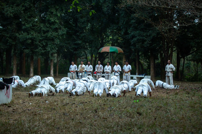 For the following two days, the camp followed a rigorous schedule consisting of three intensive sessions daily. The first session of each day began in the pre-dawn mist at 5:00 AM with a formal lineup and a 3km endurance jog through the serene BARD campus. These early morning sessions were vital for centering the mind through meditation before transitioning into technical Kihon and Eido Keiko. Participants were also pushed through a variety of strength training and conditioning exercises designed to build the foundational stamina required for full-contact karate.