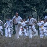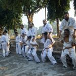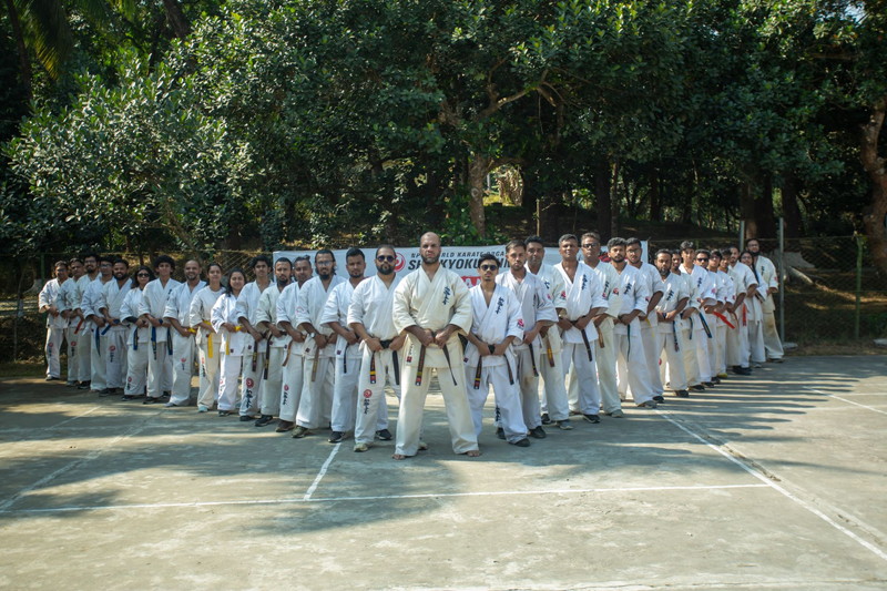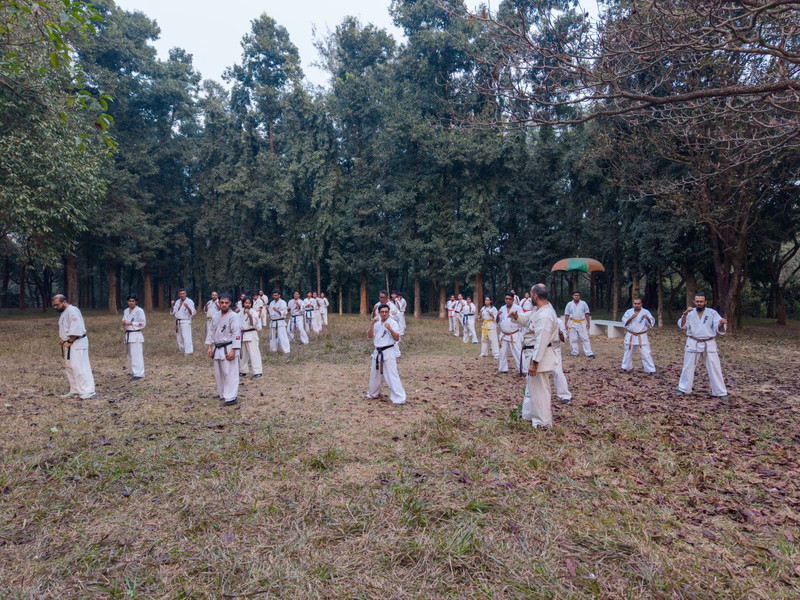 初日は型の習得と組手、筋力強化に重点を置いた2つの集中セッションが行われ、2日目と3日目は、早朝のジョギングや瞑想、技術的な稽古、筋力トレーニング、組手など、厳しいスケジュールで心身を鍛えました。最終日には全員で1,000回の中段突きと前蹴りを行い、キャンプの締めくくりとして決してあきらめない精神を共有しました。最後にホサイン師範の激励スピーチがあり、参加者たちに、ここで得た知識をそれぞれの道場での稽古や普段の日常に取り入れるよう促しました。