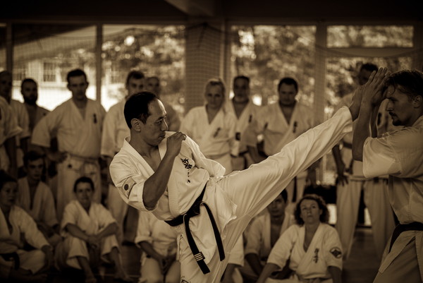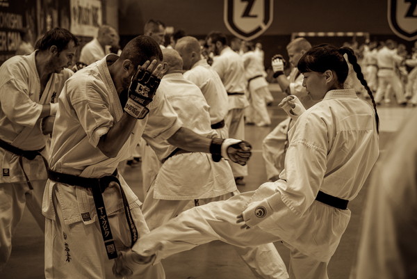 The Poland 4 Branches Summer Camp 2018 was organized as a joint operation between Branch Chiefs, Tomasz Basiak, Bogdan Jeremicz, Artur Wilento, and Mariusz Godos. The camp was held at the Polish city of Bydgoszcz (Sport Club Zawisza Bydgoszcz area) on August 23-26, with Japanese instructors Shihan Kensaku Yamamoto and Sensei Emi Shoguchi. More than 160 participants, including 90 black belts, 4 Polish Branch Chiefs and Oleksandr Kuzmin, BC from Ukraine, trained the elements of Kihon, Ido Geiko, Kata, and Kumite, especially kicks and punches. Polish fighters were impressed with the perfect kick techniques of Shihan Yamamoto and Sensei Shoguchi. Between trainings, the Japanese instructors explained to the participants about traditional karate training in Japan. It was a great time in a fantastic atmosphere.