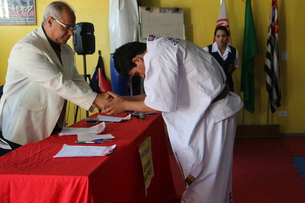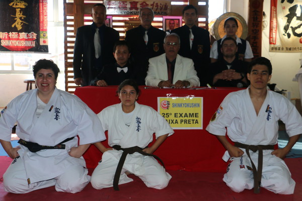 7月17日、サンパウロ州バルエリの本部道場にて第25回昇段審査が行われ、近隣の市から集まった3名が初段(2名)と弐段に挑戦しました。