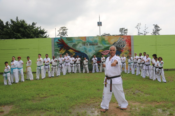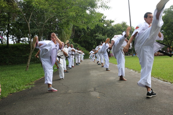 Shihan Denivaldo Carvalho brought together the instructors and students with a short run in the park, Kihon, Idogeiko and Kumite.