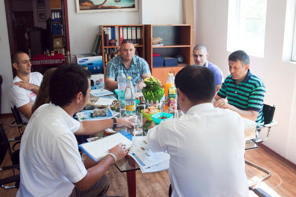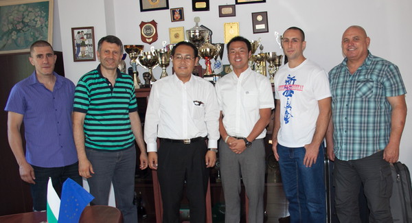 2017年8月2日、岡山市スポーツ振興課・スポーツ誘致推進室の藤井健介室長、山地貴之氏がブルガリアのプロヴディフ市を訪問し、ブルガリア支部のボリス・ニコロフ国代表、ジョルジ・ポポフ支部長、ヴァレリー・ディミトロフ四段と面談を行ないました。岡山市は2020東京オリンピック・パラリンピックに向けたキャンプ補助制度を創設しており、ブルガリアのスポーツ団体との関係構築において、かねてから交流(岡山市長への表敬訪問など)のあった岡山東支部の石原延支部長に相談をしたところ、総本部事務局を経由したブルガリア支部との連絡や調整に繋がり、このミーティングが実現しました。