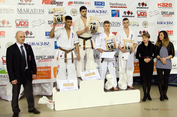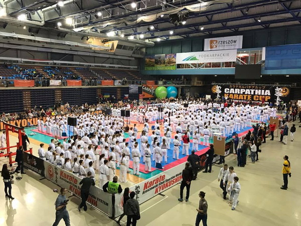 February 11, 2017 in Sports Hall “Podpromie” in Rzeszow took place the 7th edition of the tournament Poland Carpathia Karate Cup 2017. The tournament was organized by Karpinski Branch – Rzeszow Club Martial Arts System managed by Sensei Janusz Wisniewski. Main judge was Shihan Mark Krejpcio. In the competition participated a record number of 517 competitors from 65 clubs from 11 European countries: Austria, Belarus, Belgium, Czech Republic, Hungary, Lithuania, Poland, Russia, Slovakia, Sweden, and Ukraine, represented by various Karate organizations: WKO, IFK, Matsushima, Rengokai, Seido, KWF, IKO, WKB, Sosai Poland, and Shidokan. The competitors participated in 50 categories divided by age and weight.