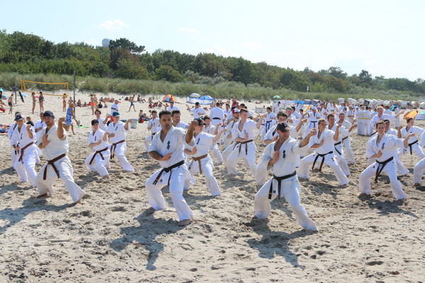 More than 110 Karatekas from all over Germany and from Switzerland were motivated to follow the invitation of the German Shinkyokushinkai Organisation to attend the National Summer Camp held from July 27 to 31. The camp took place again at one of the most attractive locations at the Baltic Sea. The small town Warnemuende is a fantastic and wonderful place with many nice and long beaches for an ambitious Karate training offering so many varieties.
