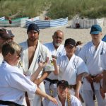 Highlights of the Summer Camp were the annual grading with 24 examinees, the night training at the beach including a final session in the Baltic Sea with all 110 karatekas practising kicks and punches together while standing in the pretty cold water of the Baltic Sea – and not to forget the Sayonara Party with barbecue, singing and dancing at the last evening.
