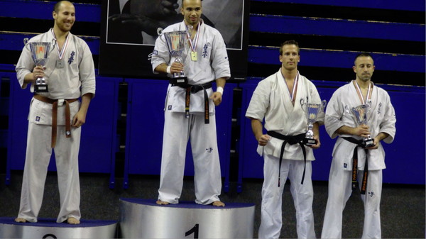 The National French Cup 2015 was held in Paris on February 15, 2015. This competition is a real big event of Full Contact Karate for all organizations and groups. Top Shinkyokushin fighters Sempai Alexis Warth from Fortschwir Dojo took 1st place in the lightweight category and the Best Fighter Cup. Thierry Nebleza and Romain Gentile from Branch Chief Jean-Philippe Bazerque Dojo, showed a strong spirit. Thierry Nebleza took 1st place in the middleweight category and Romain Gentile, the 3rd place in the heavyweight category. Also, Camille Haddouche from Prémesques Dojo took 3rd place in the women lightweight category.
