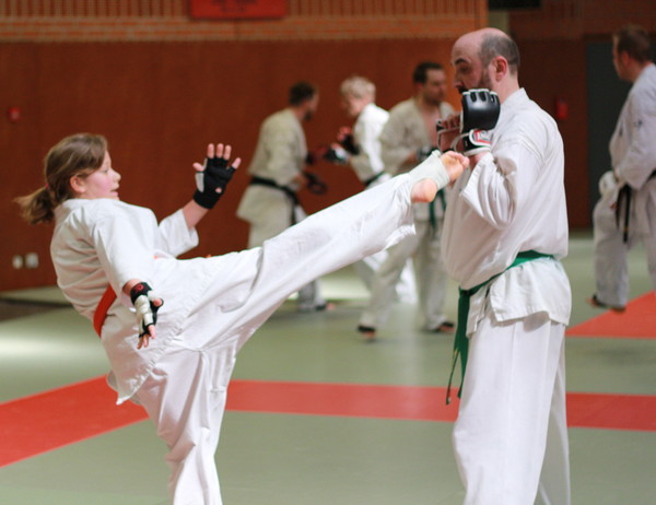 Sensei Muzaffer handled the warming up then 2 lines were made with a goal of 40 fights for everybody. Following these fights, the candidates of the grading test had to do 10 added fights! We had the privilege to see very nice exchanges between the students and noticed that the European selected karatekas were ready.