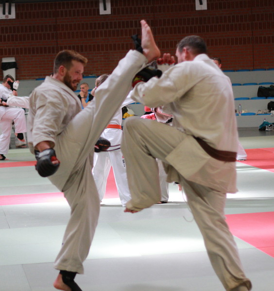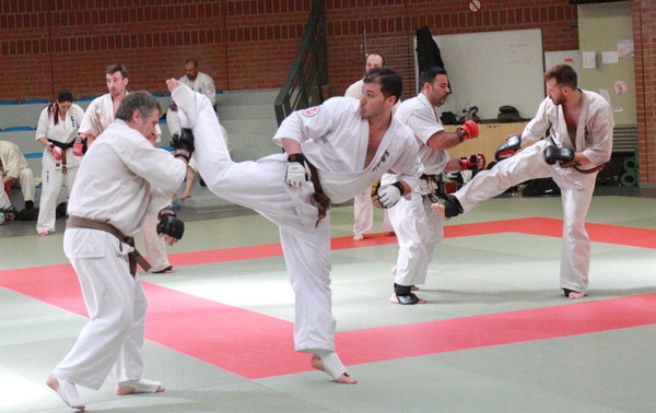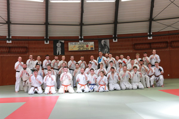 The first training was under Sensei Muzaffer Bacak in the Creps’ Dojo of Wattignies, while Shihan Koen SPITAELS helped by Sensei Bernard NAZARET and Sensei Michiel VLEMINCK (president of the Belgian Federation) directed the grading test.