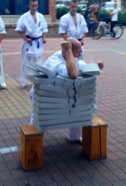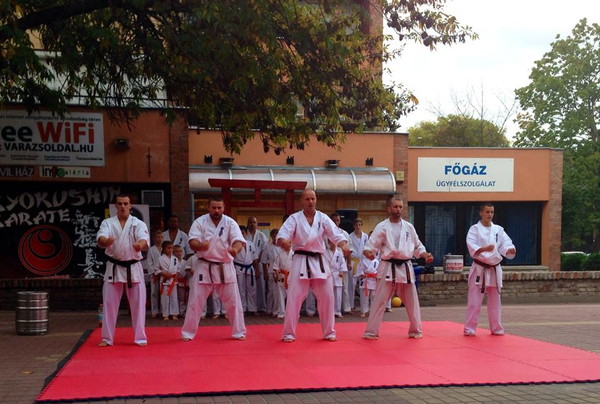 ティボール・アゴーチ参段の道場から約150名が参加し、音楽に合わせて型、組手、試し割りを行いました。また、カラテドリームカップ2014国際大会や日本の文化を特集した写真展も大好評でした。