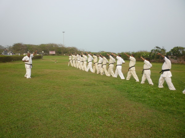 Then the next training session was from 11.30 am. This was mainly for the seniors (mainly black belts and senior belts) with an idea of making them acclimatized with the blazing heat of the sun. In this session we had an advance regime of training. This session was directly under the supervision of Shihan Shivaji Ganguly. After the strenuous session we had our lunch which had elements like boiled ladies fingers, boiled egg , boiled papaya ,boiled bitter gourd etc.