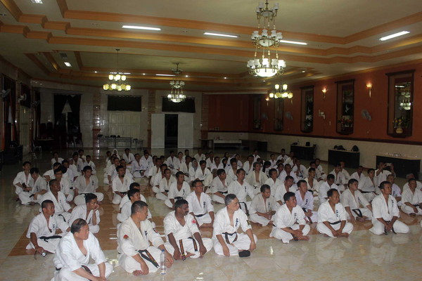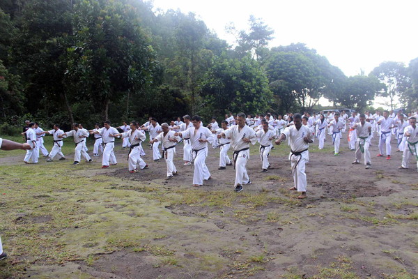 At 8:30 a.m., we went back to hotel for breakfast and then went for sightseeing to the area affected by the mountain disaster erupted. After having lunch and some rest, we continued the second session at hall of Hotel Taman Eden. In that afternoon we practiced all Katas and finished at 18:00 p.m.
