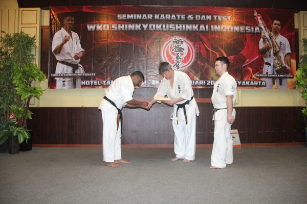 2月23日~25日、日本より外舘慎一師範、亀山真選手が招待され 、ジョグジャカルタにてセミナーおよび昇段審査会が開催されました。