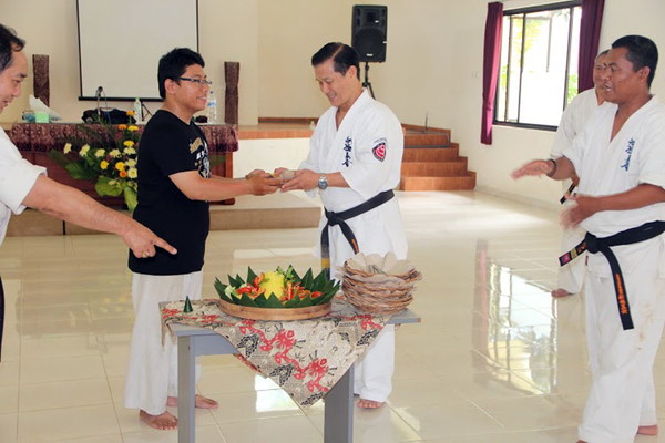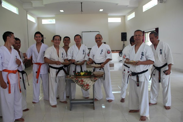 最後には、1月25日に33周年記念を迎えた新極真会インドネシア支部を祝うためにトゥンペン(お祝いごとの際に作る料理)がサプライズで用意され、新極真会インドネシア支部が会員にとっても社会にとってもより有益な存在となれるよう、組織の益々の発展を心から祈りました。