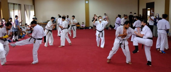 恒例のインドネシア空手セミナー&昇段審査会が、3月27、28日に中部ジャワ州のサラティーガ市で行われました。コロナ禍で、当初の予定より1ヶ月遅れでの開催となりましたが、120名が参加したイベントは大成功に終わりました。