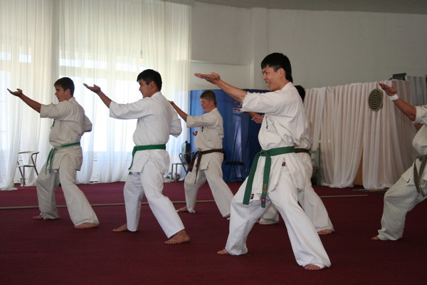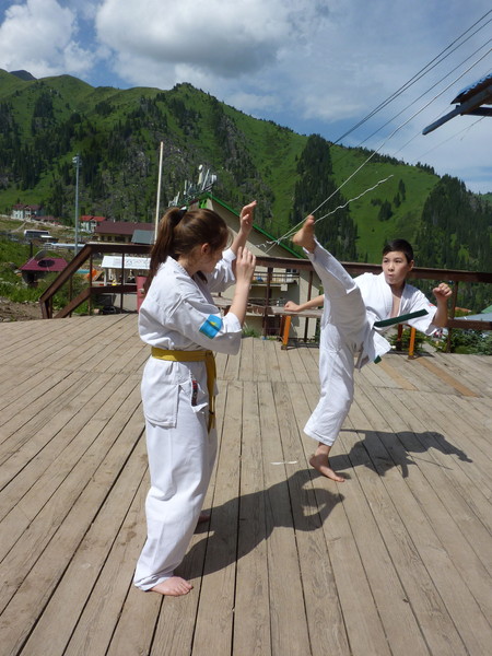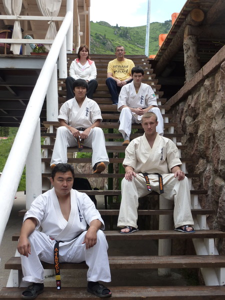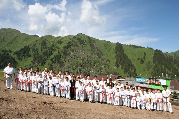 The camp was attended by about 100 students. Dramatic climate change has presented quite a few surprises. High pressure, nosebleeds, headaches, temperature 0 degrees – all had to endure our students. Training took place 4-5 times a day. Heavy duty smoothed excellent food and great hiking in the mountains of Trans-Ili Alatau. The final chord was coming gashuku Dan test. As a result of the 10 applicants passed the three – to Shodan – Satybaldyev Adilet, 2-dan Bahtiev Arken, Nurmaganov Serik.