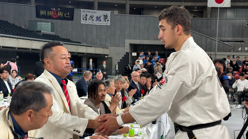 10月18日・19日には、東京で「第57回全日本空手道選手権大会」がオープントーナメントとして開催され、外国籍選手にも門戸を開放しました。新極真会の活動が世界大会を軸に回っている今、次代を担う選手たちの台頭が著しく、本大会でもその勢いが明確に表れました。第1回WFKO世界大会軽重量級王者・渡辺和志選手が日本代表として決勝に進出し、カザフスタンの新鋭・アンジェイ・キンザースキー選手と激しい戦いを展開しました。結果は、アンジェイ選手が一本勝ちを収め、見事な戴冠を果たしました。 アンジェイ選手は、この全日本選手権を含めた3週連続の国際大会すべてで優勝するという快挙を成し遂げています。全日本選手権については、約半世紀の歴史のなかで、初の外国人選手による優勝という大きな節目を迎えたことに、心からの敬意を表します。同時に、日本選手のさらなる飛躍と、2年後の第14回世界大会に向けた強化への意欲を新たにしています。