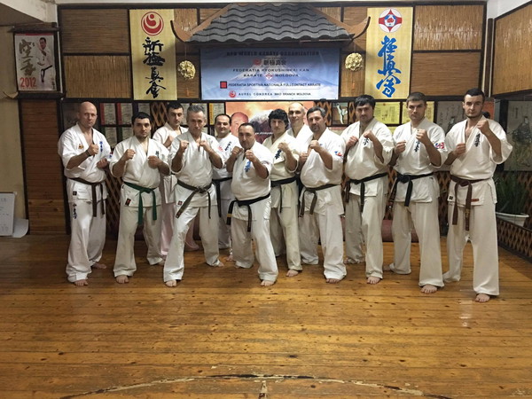 This year’s camp was very strong and dynamic. Shihan has a very quick and advanced technique, and it was a great pleasure to learn from him. The group was divided in three parts, and was trained by three instructors. The general assembly took place in the morning of the March 24. All 16 Clubs from the Moldova Federation, together with students and trainers from 3 different countries began the seminar with 4 trainings per day. The trainings were mainly focused on Kata and Kata Bunkai.