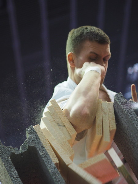 Besides the kata and the kumite competitions, breaking competition and spectacular martial arts demonstrations were presented to the audience of the sport hall.