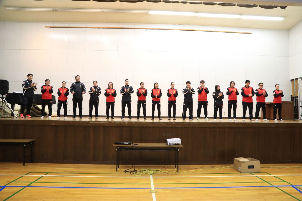 続けて、20周年を記念して選手強化委員長である三好副代表に将口コーチ、石原コーチ、山中から花束が贈呈され、代表して将口コーチが「こうして長く歴史ある合宿となり、そこからたくさんの世界チャンピオンが誕生できたのは、緑代表をはじめ三好総監督、奥村監督、コーチのみなさまが情熱をもって指導してくださったおかげだと思っています。本当にいつもありがとうございます。伝統継承を合言葉に必ず結果で恩返しをしますので、これからもよろしくお願いします」と感謝を伝えた。
