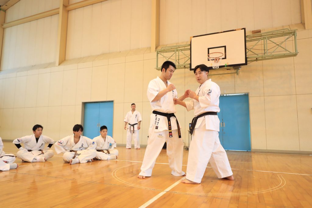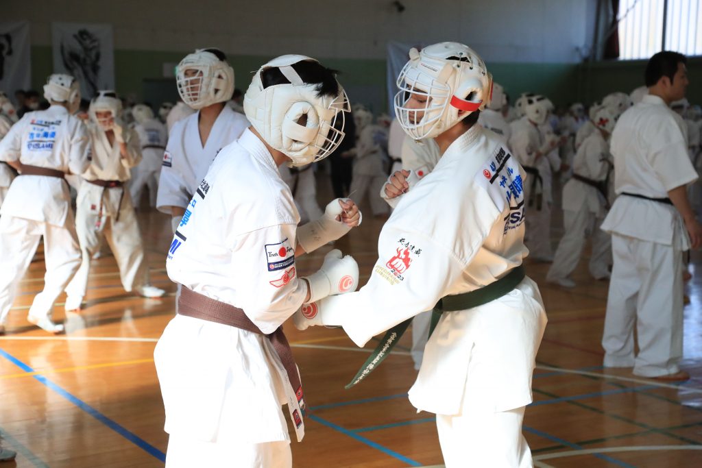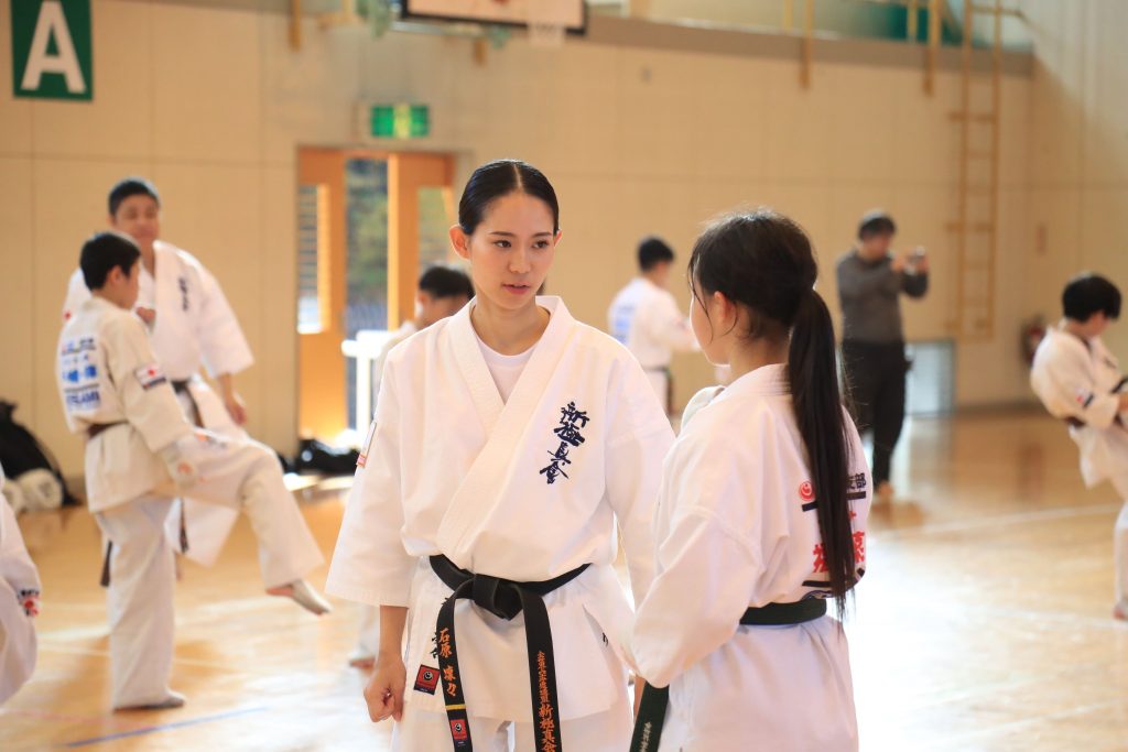 そこから高校生・一般、中学生、小学生の3グループで男女階級別に分かれて組手を実施。各々が3日間培ってきた力を出し切り、お互いを高め合った。